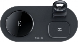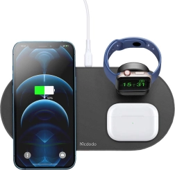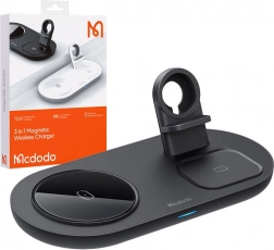 Farvel til kabelspaghetti. Den elegante trådløse station MCDODO 3-i-1 samler opladning af telefon, ur og høretelefoner ét sted. Den understøtter MagSafe til iPhone og er bagudkompatibel med standarderne 10 W/7,5 W/5 W, så du får hurtig og pålidelig opladning til en bred vifte af enheder, inklusive udvalgte Android-telefoner.