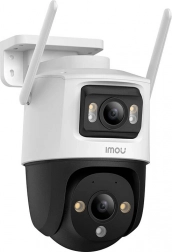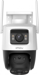 Imou Cruiser Dual 8MP er et alsidigt udendørs sikkerhedskamera, som med to uafhængige objektiver (3 MP + 5 MP) kan overvåge to forskellige steder samtidigt. Det leverer et klart og detaljeret billede dag og nat med nattilstandene Smart / Fuld farve / IR / Fra. Det drejelige design giver dækning på op til 355° horisontalt og 90° vertikalt (nederste objektiv) og 260°/30° (øverste objektiv).