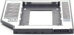 Udvid nemt lagerpladsen i din bærbare: denne ramme erstatter det optiske drev (12,7 mm) og giver plads til en 2,5" SATA HDD/SSD med højde op til 12 mm. Installationen er hurtig og intuitiv – indsæt disken, skub adapteren ind i bayen og fastgør den med en skrue.