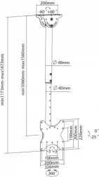 Loftbeslag til LCD/LED 23-42 tommer 50 kg lader dig sikkert montere din skærm eller tv i loftet. Nyd maksimal fleksibilitet takket være justerbar længde og hældningsvinkel.