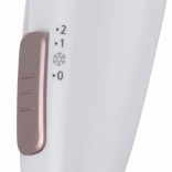 Hårtørreren HDD301RO er designet til hurtigt og effektivt at tørre håret og samtidig pleje det. Med sin elegante hvid-rosa farve tiltrækker den enhver bruger, og de kompakte mål samt det foldbare håndtag værdsættes af dem, der ofte rejser.