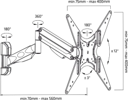 Vægbeslag Maclean MC-784 er designet til maksimal fleksibilitet og komfort ved justering af betragtningsvinkler. Takket være gasfjederen kan du nemt tilpasse skærmens position efter dine præferencer: