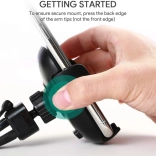 Den bredt justerbare kæbe med hurtigudløserknap muliggør lynhurtig indsætning og udtagning af telefonen. Kontaktfladerne er polstret med blød silikone, som dæmper vibrationer, holder telefonen uden at glide og beskytter den mod ridser. Fastgørelsesmekanismen er kompatibel med de fleste standardventilationer – den klarer både horisontale og vertikale lameller samt tyndere og tykkere riste.