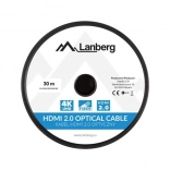 Aktivt optisk HDMI 2.0-kabel fra LANBERG med en længde på 30 m overfører pålideligt video og lyd i 4K@60 Hz uden tab af kvalitet. Takket være ensrettet tilslutning og tydelig mærkning af stik sikres fejlfri installation. Understøtter HDR, 3D, ARC og CEC 2.0, har forgylte stik og er modstandsdygtigt over for EMI-forstyrrelser.