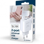 Kompakt dobbelt USB-vægoplader med output op til 2,4 A for hurtig og sikker opladning af to enheder samtidigt. De universelle 5 V USB-udgange er ideelle til smartphones, tablets og tilbehør, og takket være den lette konstruktion er opladeren perfekt til rejser og hjemmet.