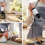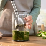 Hakeren og piskeriset udvider dine muligheder – fra hakkede krydderurter til luftige cremer. Målebægeret gør det nemt at blande mindre portioner.