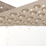 Drænhuller fremskynder vandafledningen, begrænser skimmelvækst, og takket være ophængshullet tørrer måtten hurtigt og fylder minimalt.