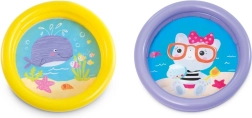 Let og kompakt børnepool med en diameter på 61 cm og en højde på 15 cm, ideel til altan, terrasse og have. Den har to oppustelige kamre, er lavet af holdbar vinyl, og takket være det glade design vil den glæde børn fra 1 til 3 år. Let at sætte op og pakke sammen, volumen ca. 17 l ved vandstand på 8 cm, inkl. reparationssæt.