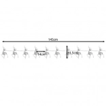 Takket være batteridriften er der ikke behov for adgang til en stikkontakt, hvilket giver nem mobilitet. Rensdyrene på kæden er lavet af gennemsigtig plast, hvilket giver en effektiv lysspredning. Hvert rensdyr er 11,5 cm højt, og afstanden mellem dem er 14 cm, hvilket sikrer en harmonisk lysspredning. Perfekt til at dekorere træet, vinduer, kamin eller hylder – overalt skaber den en magisk atmosfære.