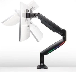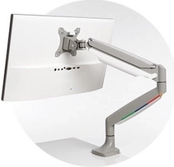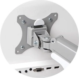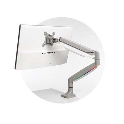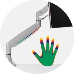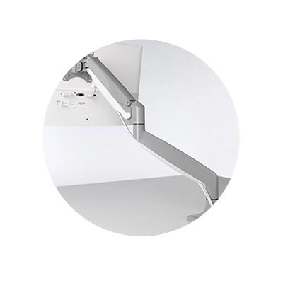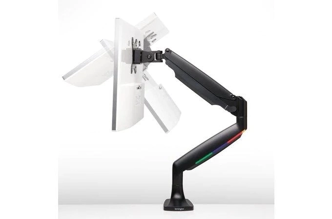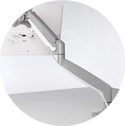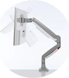 Én-touch-armen med indbygget gasfjeder gør det nemt at justere højden (6,7–19,9" eller 170–505 mm), muliggør 180° rotation og drejning af skærmen, hældningsjustering på +/− 90°, og lader skærmen bevæge sig jævnt op, ned, frem og tilbage for fuld artikulation.