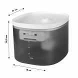 Det moderne, diskrete design i grå passer til de fleste interiører, og fontænen er samtidig nem at vedligeholde – de enkelte dele kan let skilles ad og rengøres. Den store kapacitet reducerer markant hyppigheden af påfyldning, hvilket især er praktisk, når du er væk hjemmefra i længere tid.