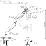 Det gasdæmpede bordbeslag til skærme er designet til at opfylde behovene for større og tungere skærme, inklusive buede modeller. Det gør det nemt at justere skærmens vinkel og position uden brug af værktøj. Der er et system til kabelskjul, og det forhindrer uønsket bevægelse af skærmen.