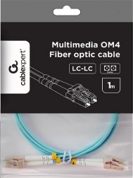 Højtydende optisk kabel OM4, ideelt til 10/40/100G netværk. Tilbyder hurtig og pålidelig forbindelse takket være LC/LC konnektorer.