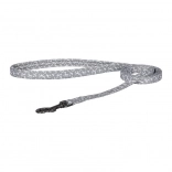 Holdbar nylonline med refleksmønster øger sikkerheden på aftenture. En metalkarabinhage giver hurtig og sikker fastgørelse til selen.