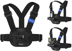 Universelt brystmonteringsbeslag fra TELESIN til actionkameraer, som sikrer stabil og komfortabel optagelse fra første-persons perspektiv. Takket være quick-release sætter du kameraet på på et sekund, og den bløde, åndbare polstring giver komfort selv ved intensiv sport. Ideel til løb, cykling, skiløb og andre outdoor-aktiviteter.