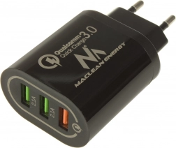 Denne kompakte og kraftfulde MACLEAN ENERGY vægoplader med tre USB-porte lader dig oplade op til tre enheder samtidigt. Med Qualcomm Quick Charge 3.0 reducerer du tiden ved stikkontakten og får stabil og sikker opladning til telefoner, tablets, hovedtelefoner og anden elektronik.
