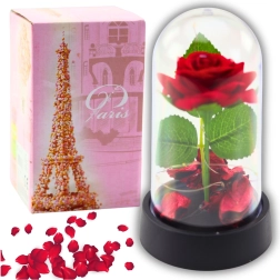 Den evige rose under en kuppel med LED-belysning er en elegant og symbolsk gave, der udtrykker de dybeste følelser og giver et unikt præg til enhver indretning. Takket være det blide LED-lys og rosens kronblade skaber den en magisk atmosfære, ideel til romantiske øjeblikke.