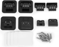 Sikkerhedsgitteret ECOTOYS er udstyret med et komplet installationssæt, som inkluderer ekspansionsskruer og klæbemonteringsbånd, hvilket muliggør sikker montering på forskellige overflader inklusive glas, metal og træ.