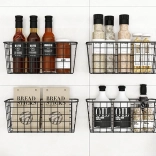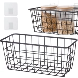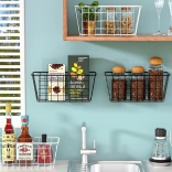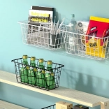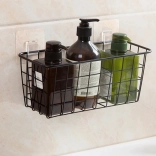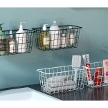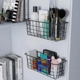 Hold orden og spar plads med denne alsidige ophængte metalbasket. Den tilbyder hurtig montering uden boring ved hjælp af selvklæbende kroge, en robust metalkonstruktion og et luftigt tråddesign for bedre luftcirkulation og overblik over de opbevarede ting. Ideel til både køkken og badeværelse til krydderier, frugt, kosmetik eller rengøringsmidler.
