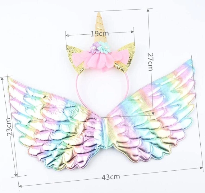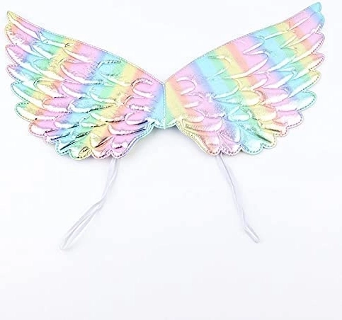 Regnbuevingerne fastgøres nemt med elastiske stropper, hvilket giver fri bevægelighed. Vingernes farver udstråler magien fra en ægte enhjørning.