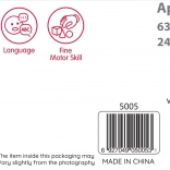 • 78 træklodser med dobbeltsidet tryk til opbygning af bygninger og indlæring af tal og bogstaver.