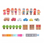 Med forskellige bygninger og figurer kan børn lære om erhverv og byinfrastruktur.