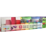 Fem kompakte bægre i forskellige farver stimulerer fantasien og understøtter sanseindtryk samt finmotorik hos børn.