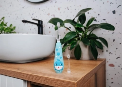 Integreret 2-minutters timer med 30-sekunders intervaller lærer børn at børste alle mundens områder jævnt, og tandbørsten slukker automatisk, når tiden er gået.