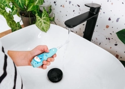 Sikker skylning under rindende vand og brug i badekarret. Farvet LED-lys motiverer børn til længere og mere regelmæssig børstning.