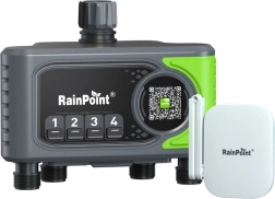 Den smarte RAINPOINT‑regulator med Wi‑Fi‑gateway håndterer op til fire uafhængige vandingszoner og er ideel til større haver. Kraftige antenner sikrer stabilt signal op til 150 m i åbent område, så du nemt kan planlægge og styre vandingen hvor som helst fra. Vælg mellem 3 tilstande (normal, pause, cyklus og gennemvædning) og 5 frekvenser (dagligt, ulige dage, lige dage, interval, brugerdefineret kalender) for præcis vanding efter planternes behov.