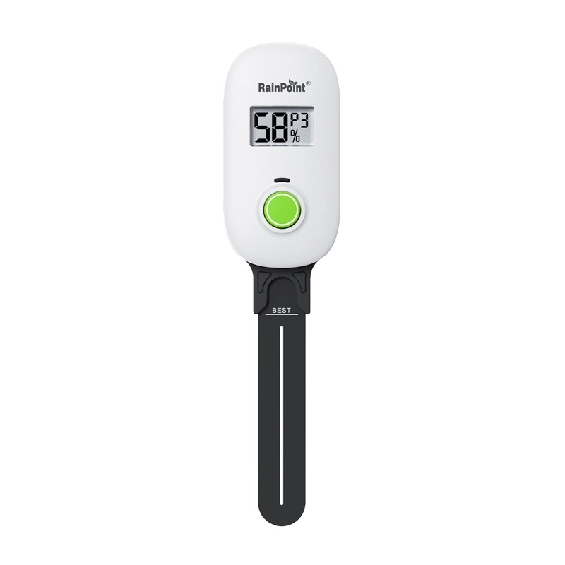 Den smarte RainPoint jordfugtighedsmåler med Wi‑Fi giver hurtige og præcise målinger på blot 2 sekunder, fjernovervågning i RainPoint Home‑appen og datahistorik i op til 1 år. Det robuste, vand- og korrosionsbestandige design muliggør permanent placering i jorden, mens alarmer for lav/høj fugt og automatisk vanding sparer både vand og tid.