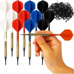 Komplet TRIZAND-sæt med dartpile til elektroniske mål tilbyder op til 12 pile, 200 udskiftelige spidser og praktisk tilbehør. Pile på 18 g af slidstærk titanium- og aluminiumlegering er godt afbalancerede, ligger godt i hånden og egner sig perfekt til begyndere og øvede. Takket være det omfattende indhold kan du spille i månedsvis uden at købe ekstra reservedele.