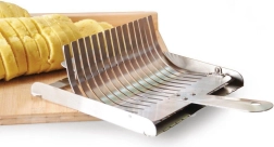 Den praktiske skærer i rustfrit stål til knödel og gnocchi gør det muligt hurtigt og præcist at skære op til 15 ensartede skiver med en tykkelse på ca. 1,4 cm. Den er lavet af kvalitets rustfrit stål, er let at rengøre og tåler opvaskemaskine.