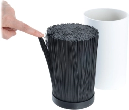 Den kompakte cylindriske form i sort farve sparer plads på køkkenbordet, holder værktøjerne lodret og passer perfekt ind i både moderne og klassiske køkkener.