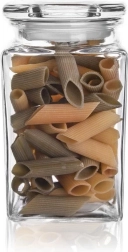 Elegant glasbeholder i retrostil med målene 10 × 10 × 19 cm sørger for overskuelig og lufttæt opbevaring af fødevarer. Det gennemsigtige, kraftige glas gør det nemt at tjekke beholdningen uden at åbne, mens tætningsringen i låget hjælper med at holde maden frisk længere og beskytter mod fugt og lugte.