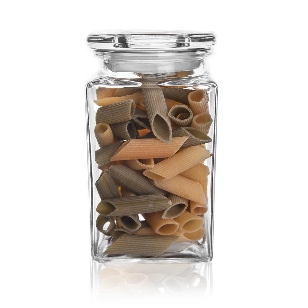 Glaslåg med tætningsring beskytter indholdet mod fugt og lugte og forlænger råvarernes holdbarhed.