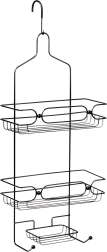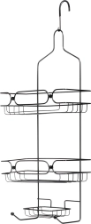 Det kvalitetsmæssige sortlakerede metal er robust og korrosionsbestandigt, så hylden holder til daglig brug. Gummibelægningen på ophængskrogen beskytter glasset og forhindrer at den glider. De to store hylder rummer shampoo og gel, den nederste sæbeskål og det dobbelte sæt kroge er ideelle til svampe, barberblade eller børster.