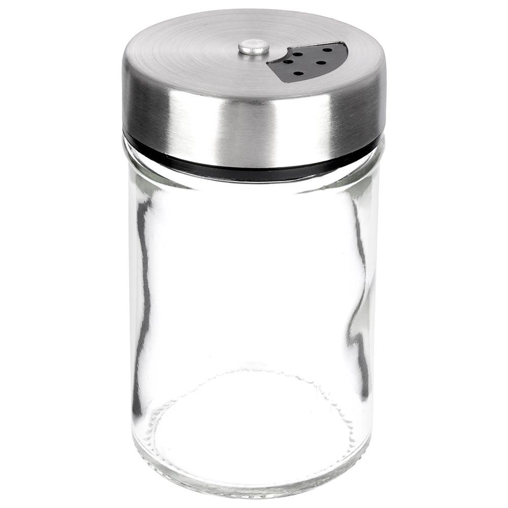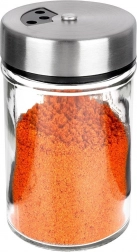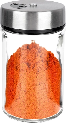 Elegant krydderiglas i klart glas med låg af rustfrit stål og plastdispenser er ideel til daglig brug i køkkenet. Takket være to hulstørrelser kan du nemt tilpasse fin eller grovere dosering og altid hælde præcis den mængde, du behøver. Den lukkelige mekanisme holder krydderierne duftende og friske længere.
