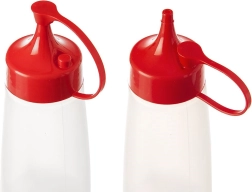 Praktisk doseringsflaske på 340 ml til præcis servering af saucer, ketchup, sennep eller olie. Det semitransparente korpus giver dig altid overblik over indholdet, de bløde vægge muliggør nem klemning, og det røde låg med prop sikrer sikker lukning uden dryp. Ideel til både hjemme- og professionelle køkkener, også til dekoration af desserter med glasur eller chokolade.