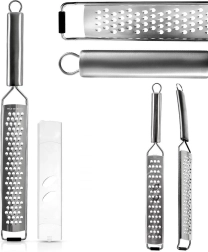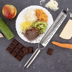 Finrivning og zester (grøntsager, hårde oste, hvidløg, nødder, chokolade, citrusskal, krydderier)