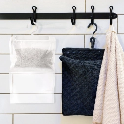 Den integrerede krog muliggør hurtig placering hvor som helst – i garderobeskab, depotrum eller badeværelse. Spar plads og fungerer uden elektricitet.