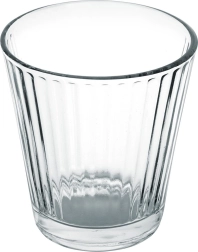 Opdag et praktisk og tidløst sæt med 3 glas på 220 ml, som passer perfekt til vand, lemonader, juice, iste og blandede drikke. Det klare glas med lodrette riller fremhæver drikkens farve og giver samtidig et mere sikkert greb.