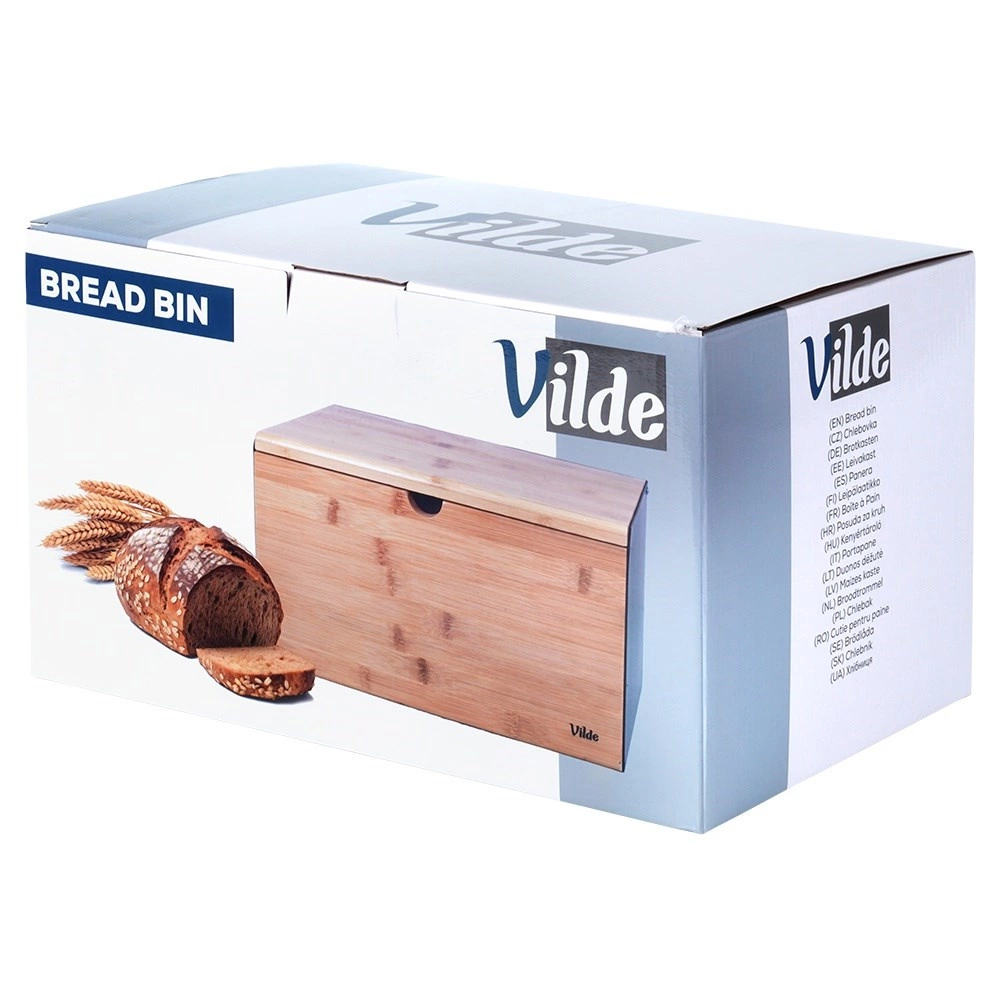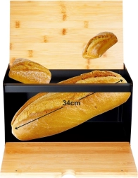 Brødkasse af bambus og metal med dobbelt låg, 35,5 × 22 × 20,5 cm