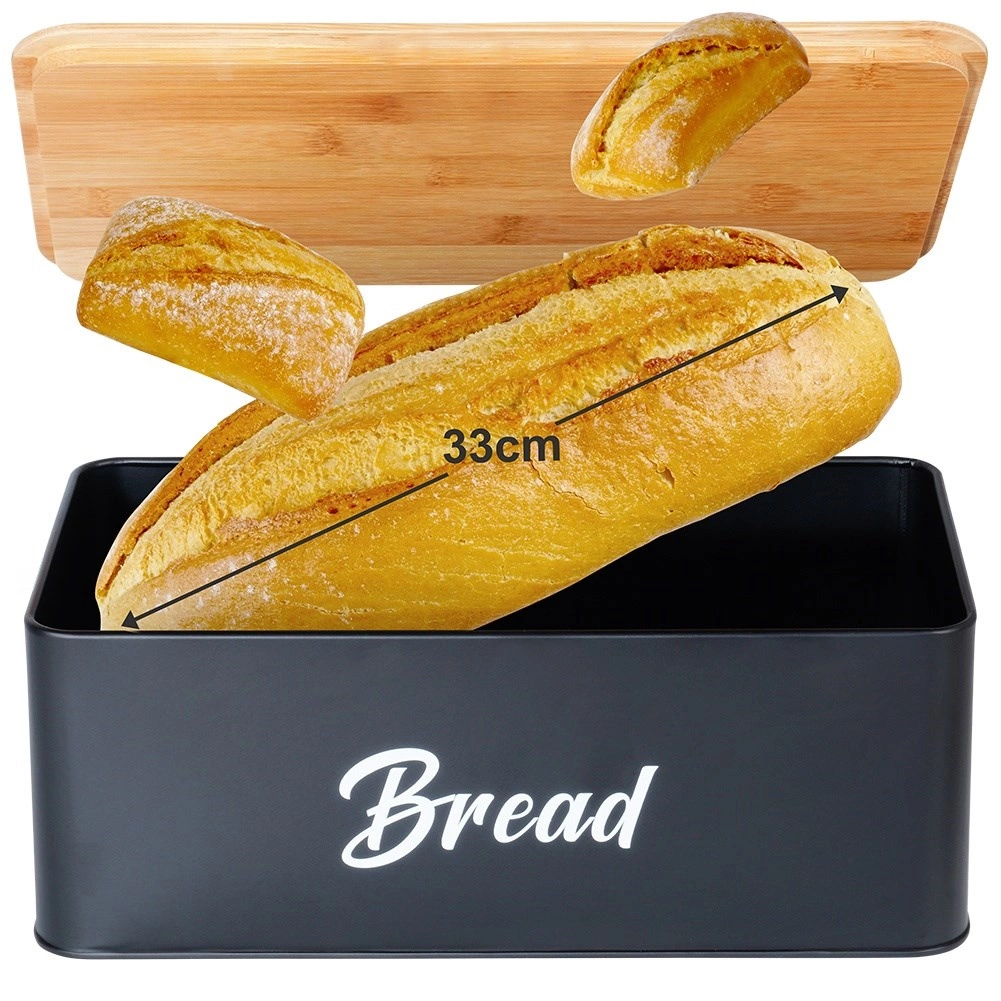 Det praktiske bambuslåg slutter tæt og fungerer samtidig som skærebræt til brød og bagværk – alt ved hånden og uden ekstra krummer.
