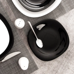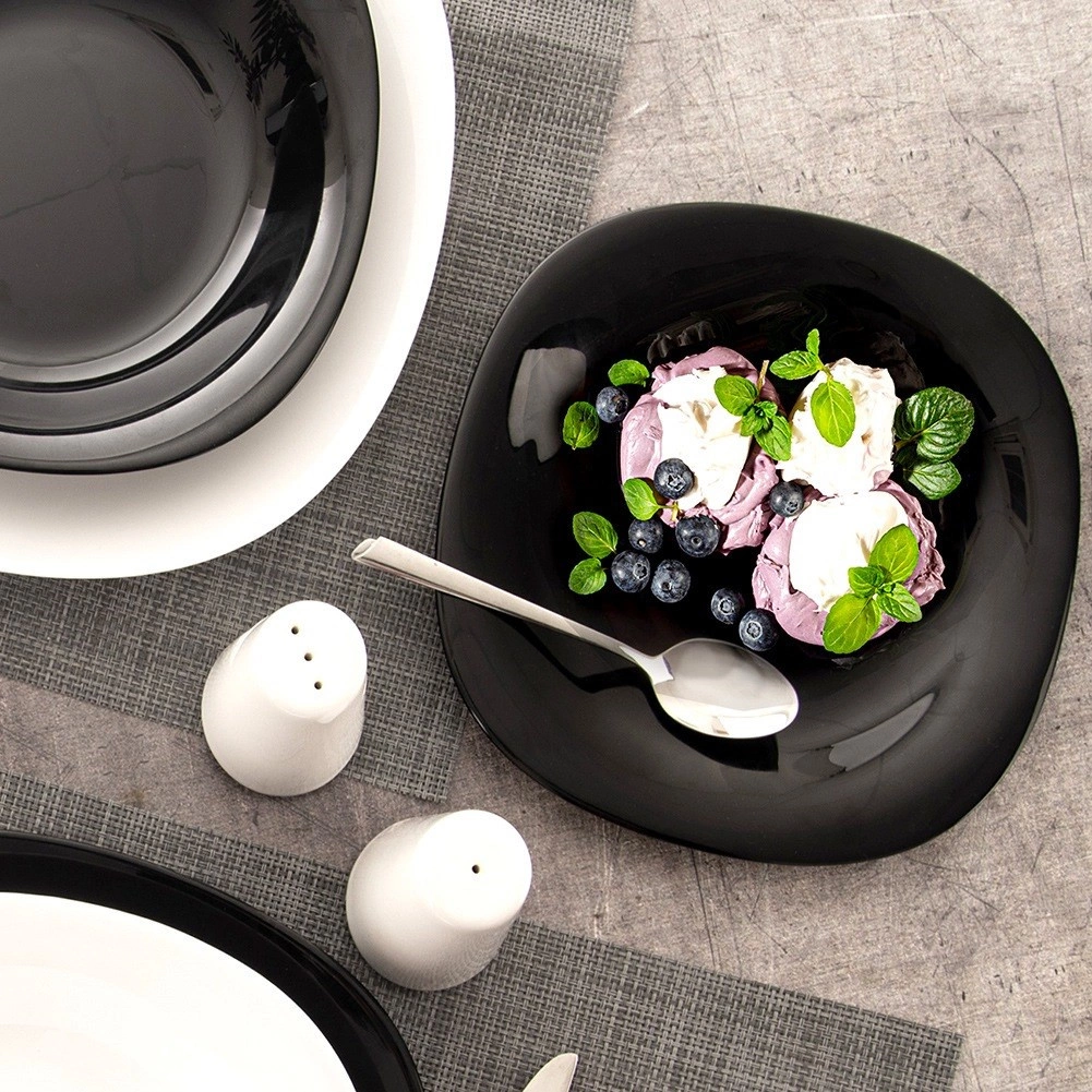Dæk et stilfuldt bord med den sorte desserttallerken LUNA. Det kvalitetsrige opalglas ligner porcelæn i udseende, er modstandsdygtigt til daglig brug og let at vedligeholde. Det minimalistiske, men markante design fremhæver servering af kager, tærter, desserter og små lækkerier.