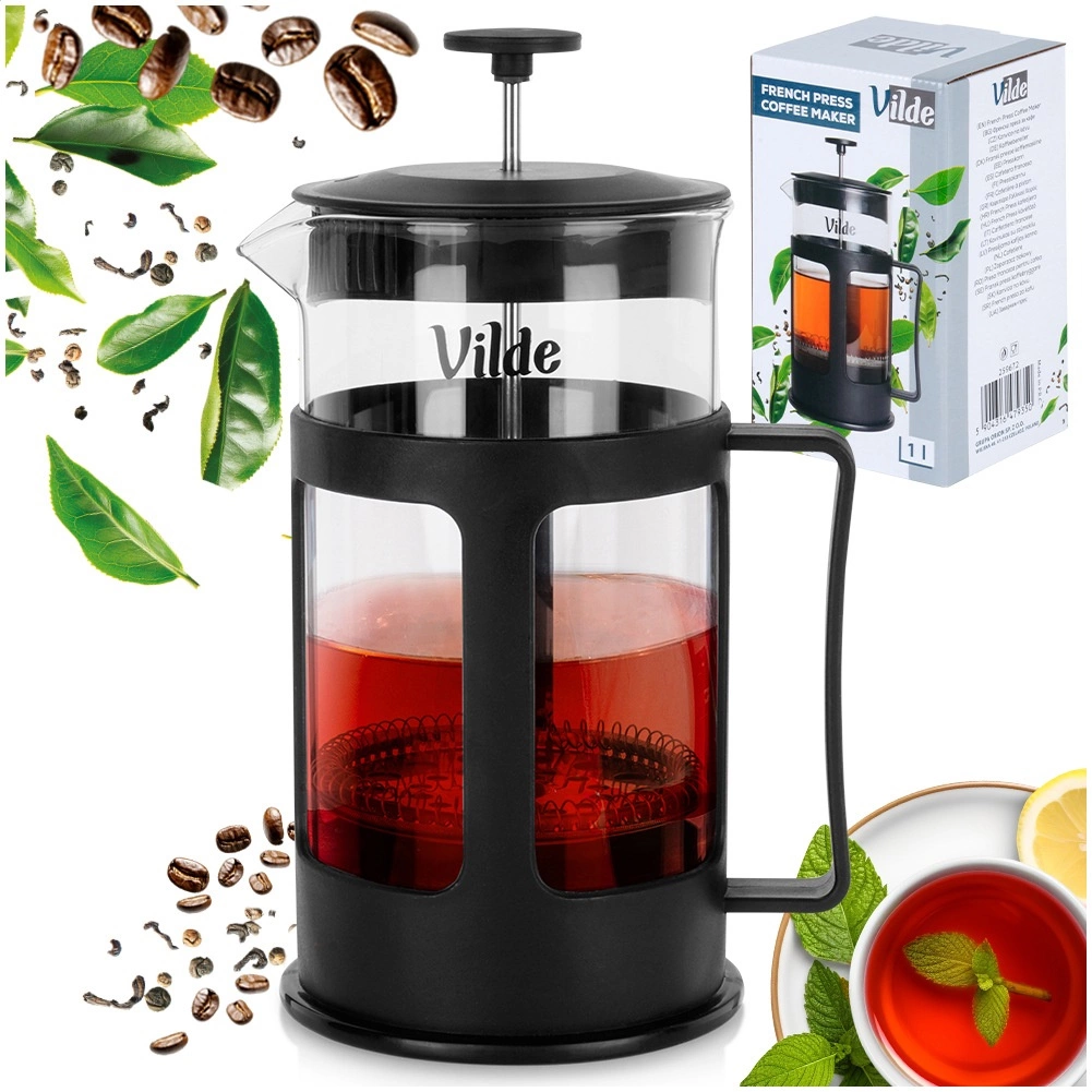 Den elegante VILDE french press forener enkelheden ved manuel brygning med ren smag. Glaskanden af borosilikatglas er modstandsdygtig over for temperaturschok, mens stemplet i rustfrit stål med fint net filtrerer selv de små partikler for en krystalklar drik. Det ergonomiske håndtag og den præcise tud gør serveringen nem både hjemme og i gastronomien.