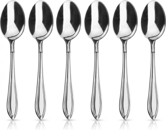 Praktisk sæt med seks skeer, der fuldender ethvert spisesæt og løfter bordets udtryk. Den blanke finish virker elegant, og det universelle design matcher både klassiske og moderne stel. Ideelle til servering af kaffe, te og desserter.