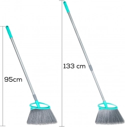 Denne alsidige kost er designet til daglig rengøring på forskellige overflader – fra fliser, beton og sten til gulve og trægulve. Elastiske og tætte syntetiske børster samler effektivt støv, sand, krummer og hår og klarer også mere genstridigt snavs. Med den teleskopiske stang indstiller du nemt den ideelle længde for komfortabel og ergonomisk fejning.