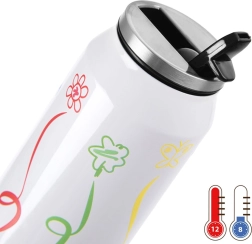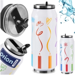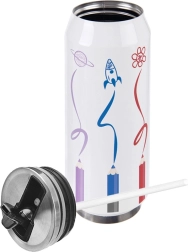 Stilfuld termokrus i dåseform med volumen på 500 ml holder dine drikke varme i op til 12 timer og kolde i op til 8 timer. Takket være dobbeltvæg med vakuumisolering, krop af rustfrit stål og tæt låg med vippen tud og sugerør er den ideel til rejser, skole og arbejde.