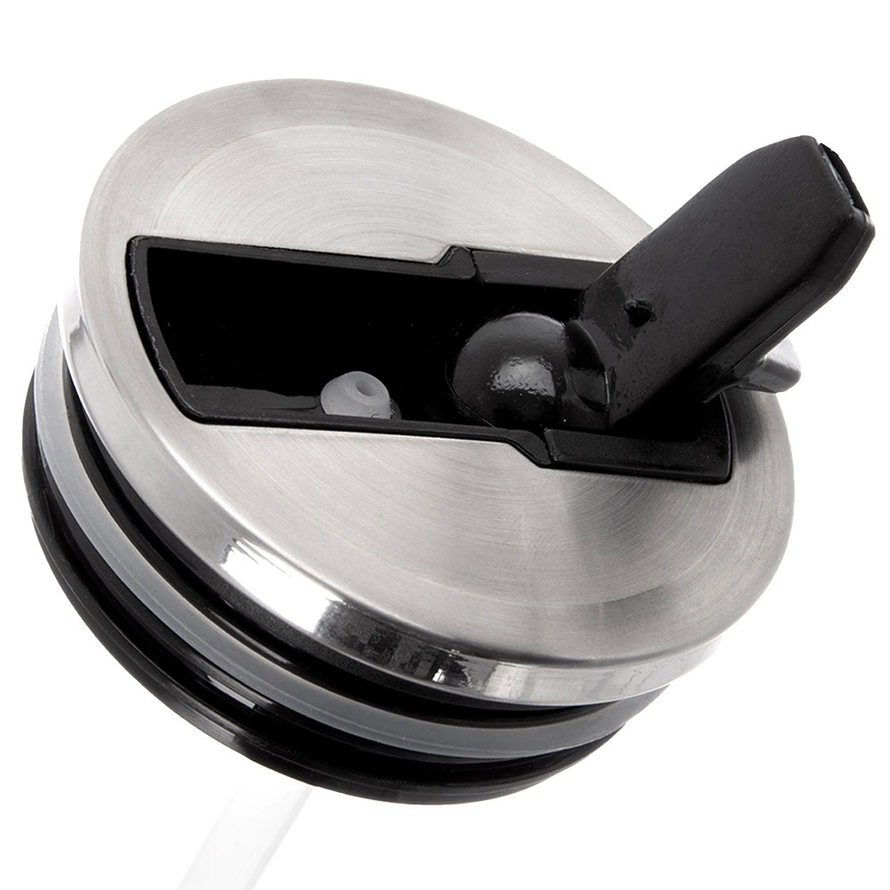 Låg med tætning og flip spout minimerer spild og lækager – sikkert i rygsæk, taske og bil.